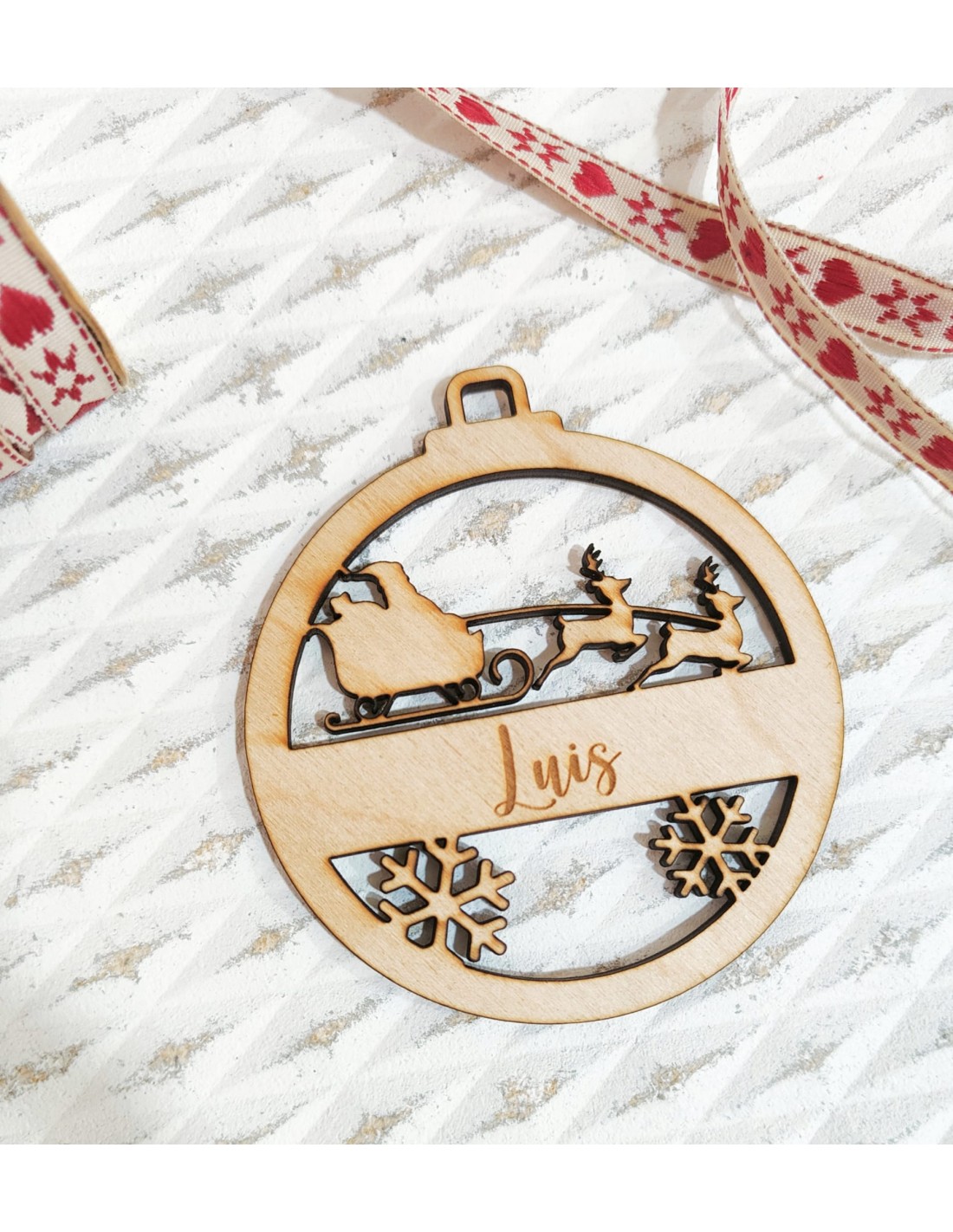 Este adorno para el árbol con bonito diseño de Trineo y nombre grabado en madera te encantará cuando los veas en tu árbol. Un detalle original que hará tu árbol especial estas Navidades. Este adorno no solo es ideal para tu árbol, también puedes ponerlo como identificativo en los paquetes navideños, para el calcetín de Papá Noel...