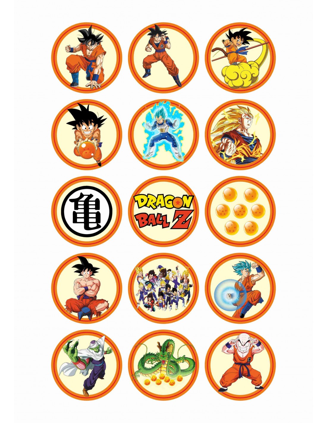 Hoja de papel de azúcar o chocotransfer, impresa con tinta comestible para decorar galletas o cupcakes con diferentes imágenes de Bola de Dragón.