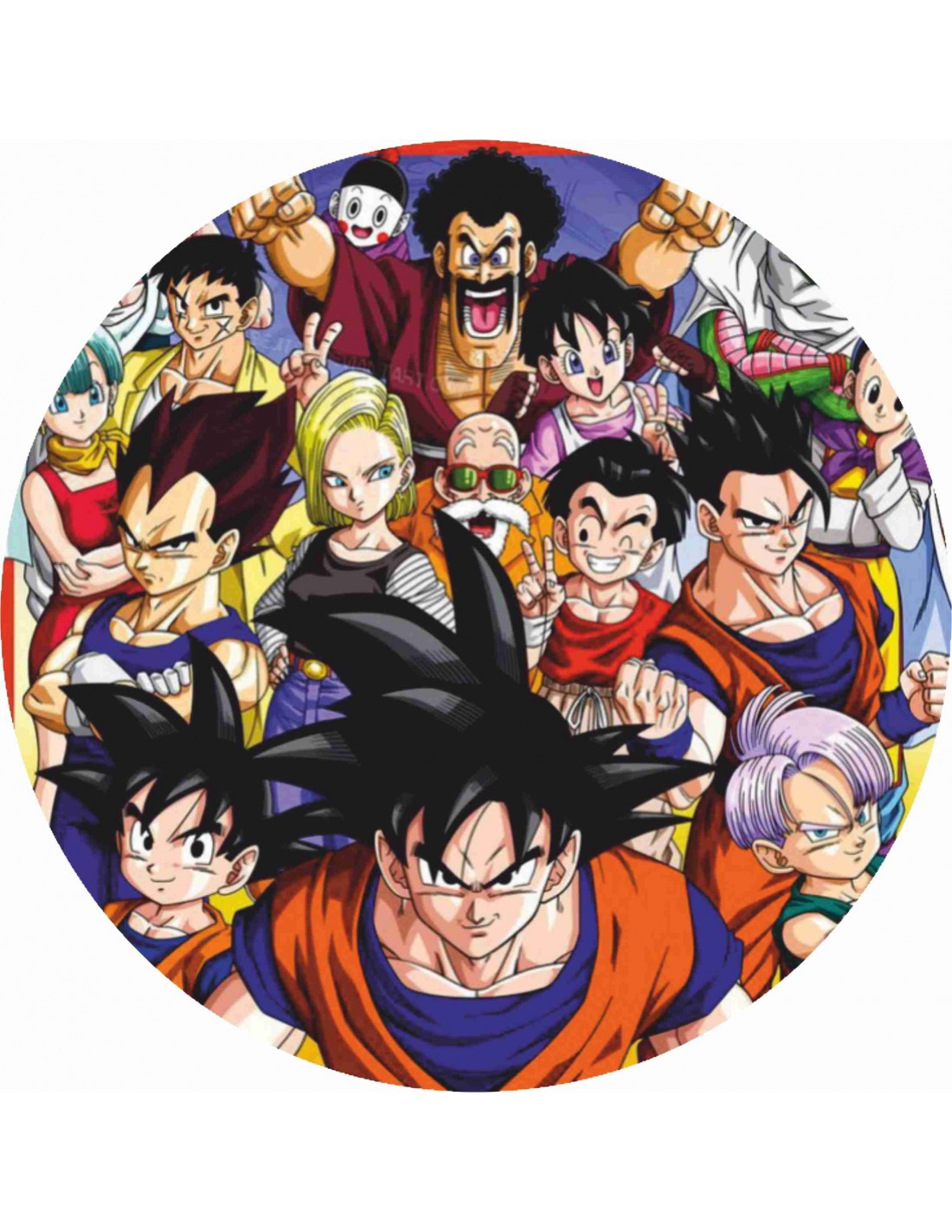 Hoja de papel de azúcar o chocotransfer, impresa con tinta comestible para decorar tartas con imágenes de los personajes de Bola de Dragón.
