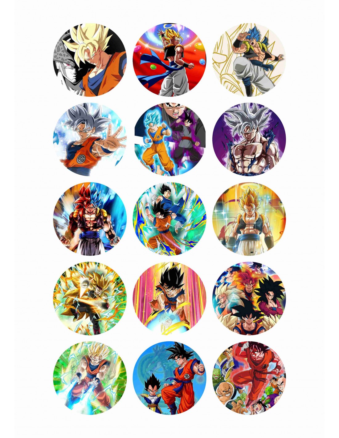 Hoja de papel de azúcar o chocotransfer, impresa con tinta comestible para decorar galletas o cupcakes con diferentes imágenes de Bola de Dragón.