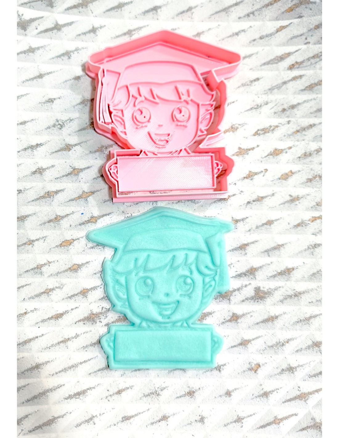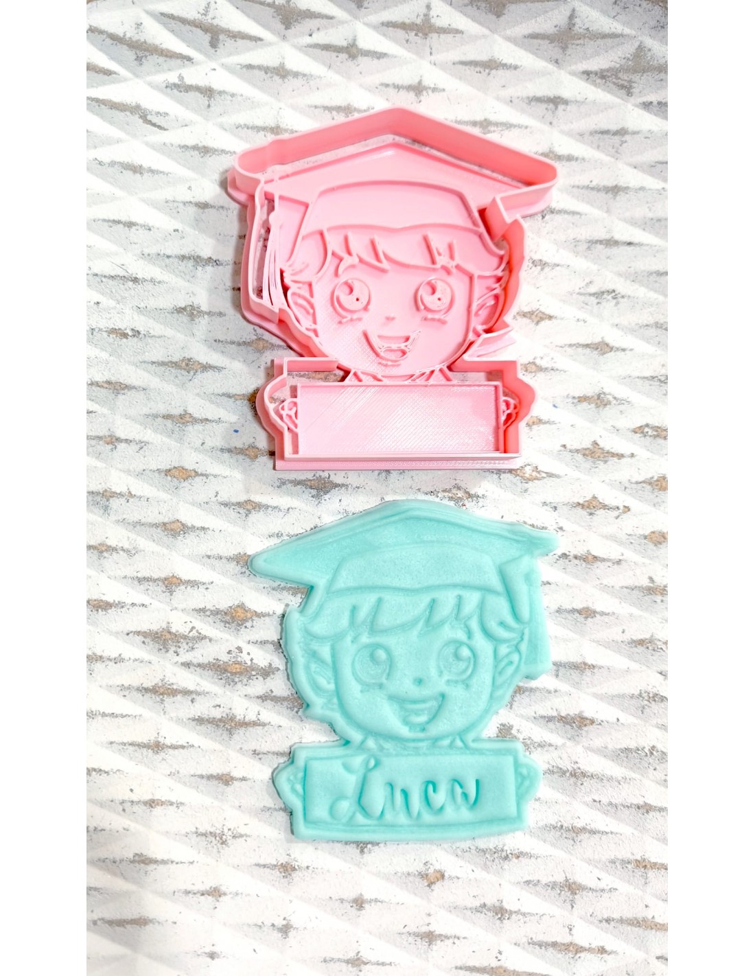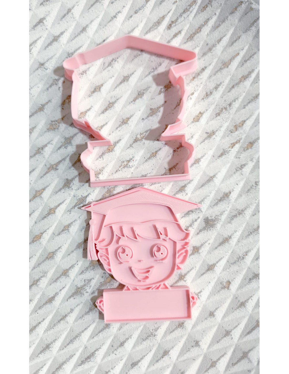 Cortador con forma de Niño Graduado con marcador para galletas.