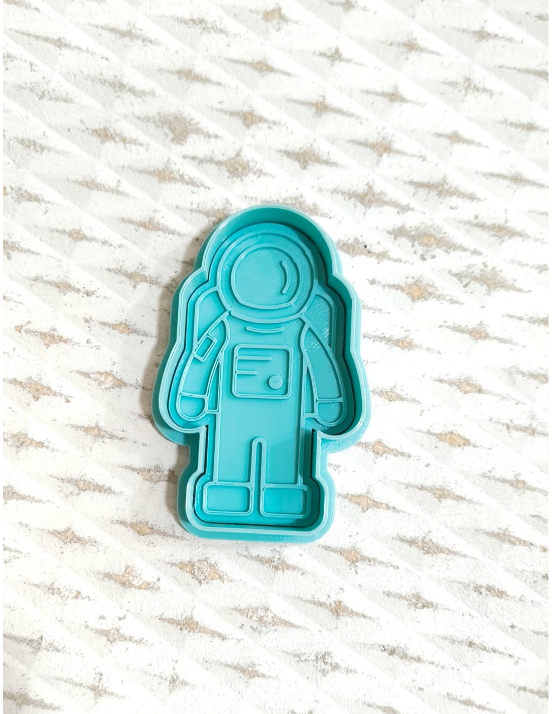 Cortador con forma de Astronauta + marcador. Con él podrás hacer originales galletas y decorarlas usando el marcador bien sobre la masa de galletas o bien sobre fondant. El dibujo queda marcado, no en relieve.
