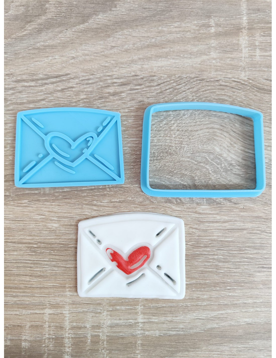 Cortador con forma de original Sobre + marcador. Con él podrás hacer originales galletas y decorarlas usando el marcador bien sobre la masa de galletas o bien sobre fondant. El dibujo queda marcado, no en relieve.