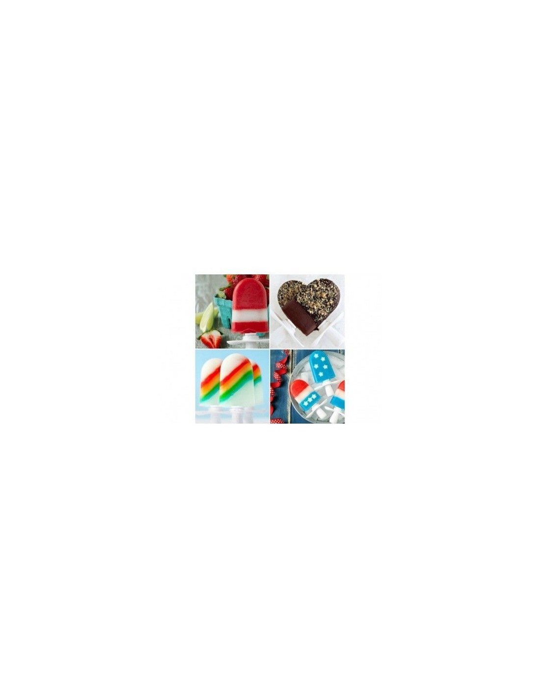 Contiene: Molde heladera de una cavidad, 3 palos de helado reutilizables, 3 bases antigoteo, 1 extractor especial de palos.