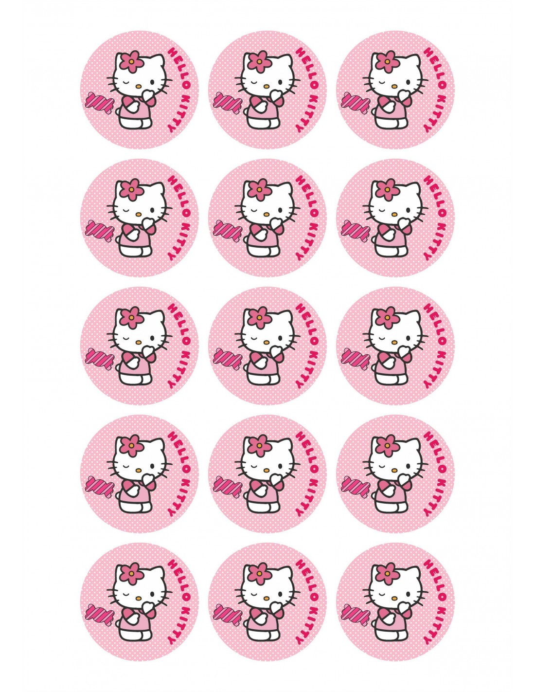 Hoja de papel de azúcar o chocotransfer impreso con tinta comestible para decorar galletas o cupcakes con Hello Kitty.
