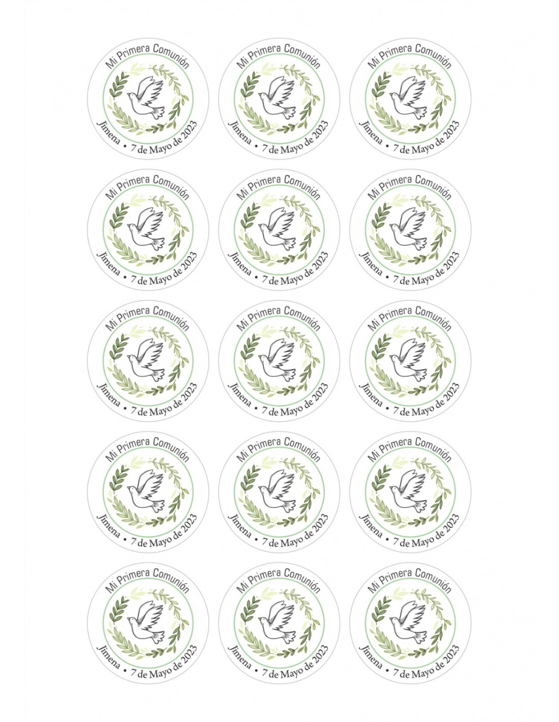 Hoja de papel de azúcar o chocotransfer impresa con tinta comestible para decorar galletas de comunión, personalizadas con nombre.