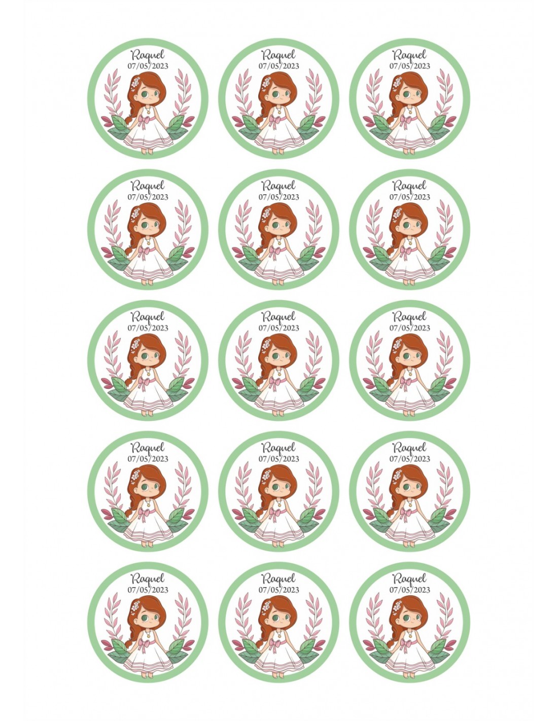 Papel de azúcar Comunión niña rosa y verde para galletas