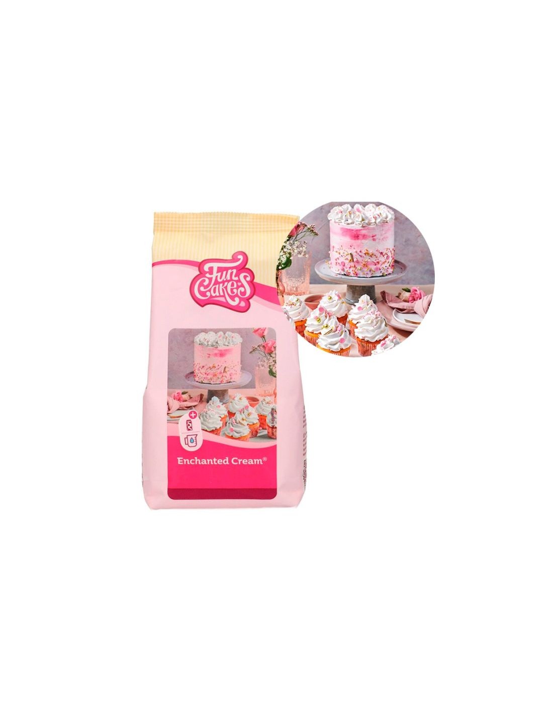 El preparado de crema encantada es una mezcla para preparar una ligera y esponjosa crema. Puedes utilizar esta crema para cubrir cualquier tarta o cupcake.