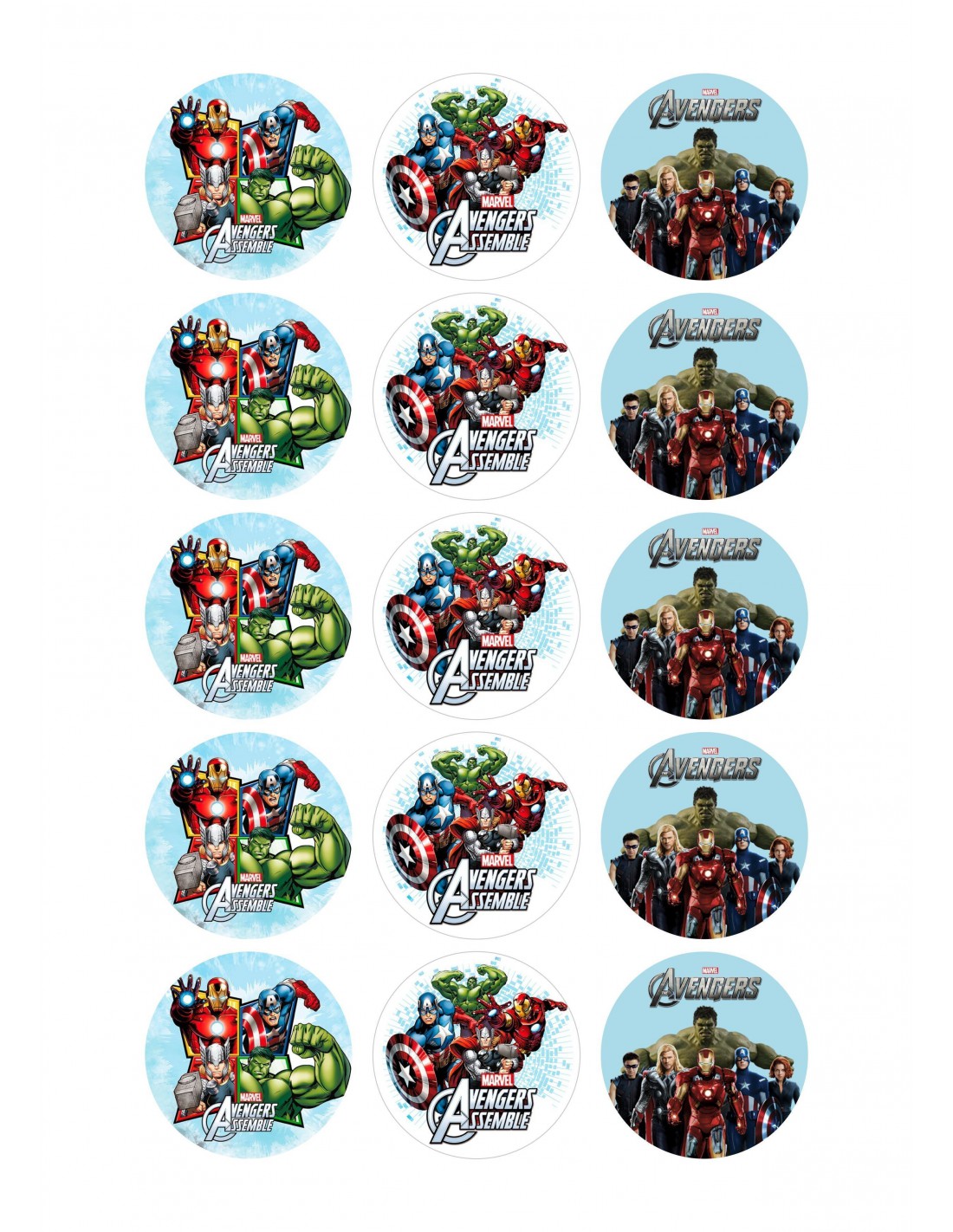Hoja de papel de azúcar o chocotransfer impreso con tinta comestible para decorar galletas de los vengadores.