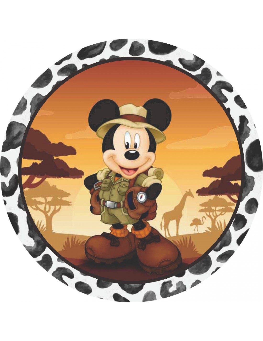 Hoja de papel de azúcar o chocotransfer impresa con tinta comestible para decorar tartas con imágenes de Mickey Safari.