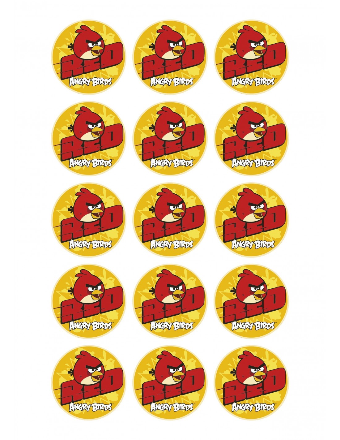 Hoja de papel de azúcar o chocotransfer impreso con tinta comestible para decorar galletas o cupcakes con los divertidos personajes de los angry birds.