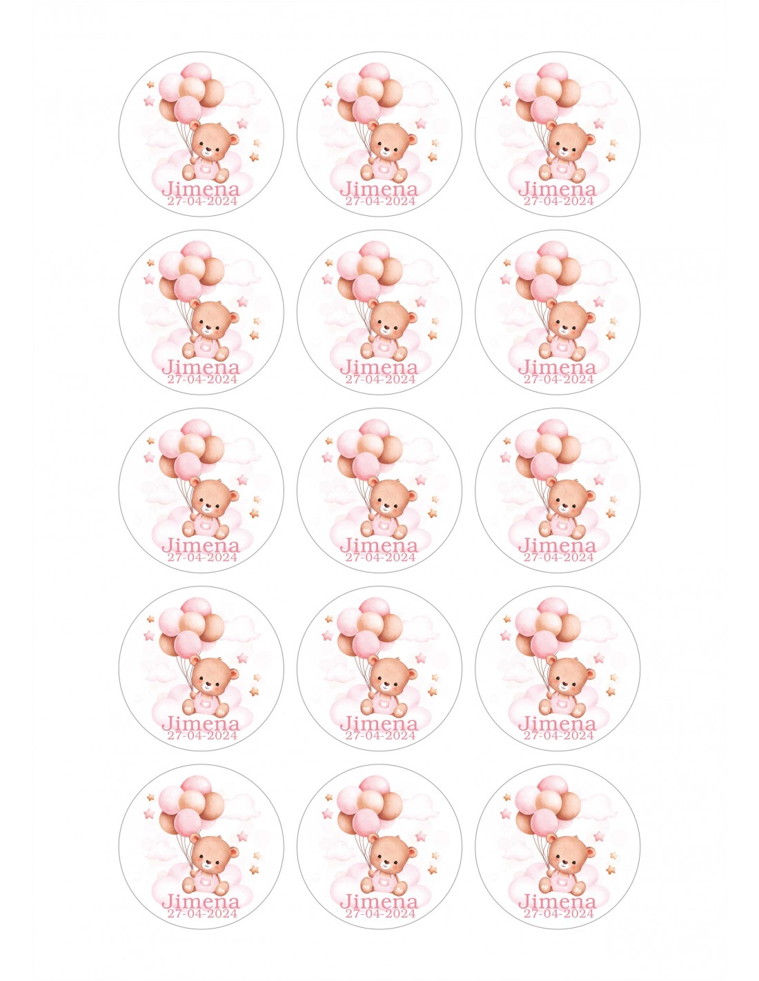 No olvide guardar su personalización para poder añadirla al carritoPapel comestible para galletas de bautizo Osita con Globos