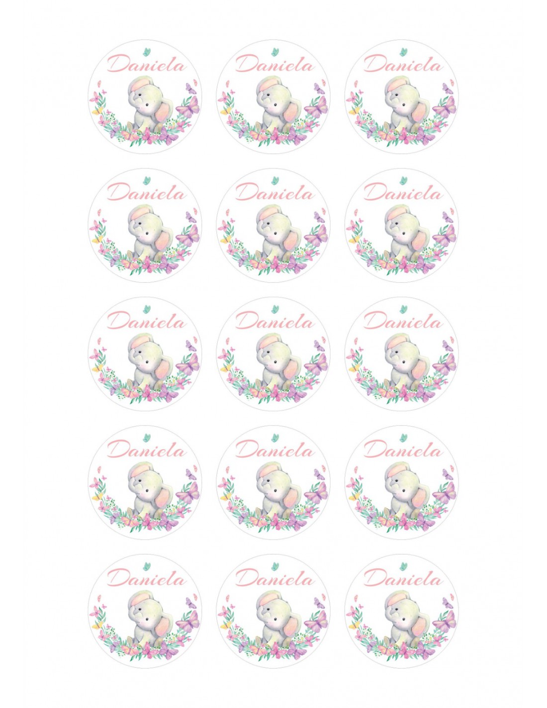 Papel de azúcar para galletas Elefante floral