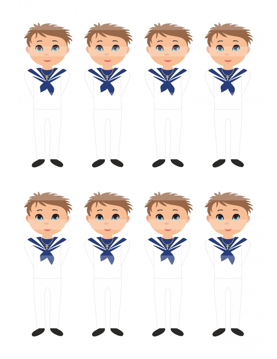 Hoja de papel de azúcar o chocotransfer impreso con tinta comestible para decorar galletas con imágenes de niños de comunión. Puedes utilizar nuestro cortador niño de comunión IA especialmente diseñado para estos papeles de azúcar.