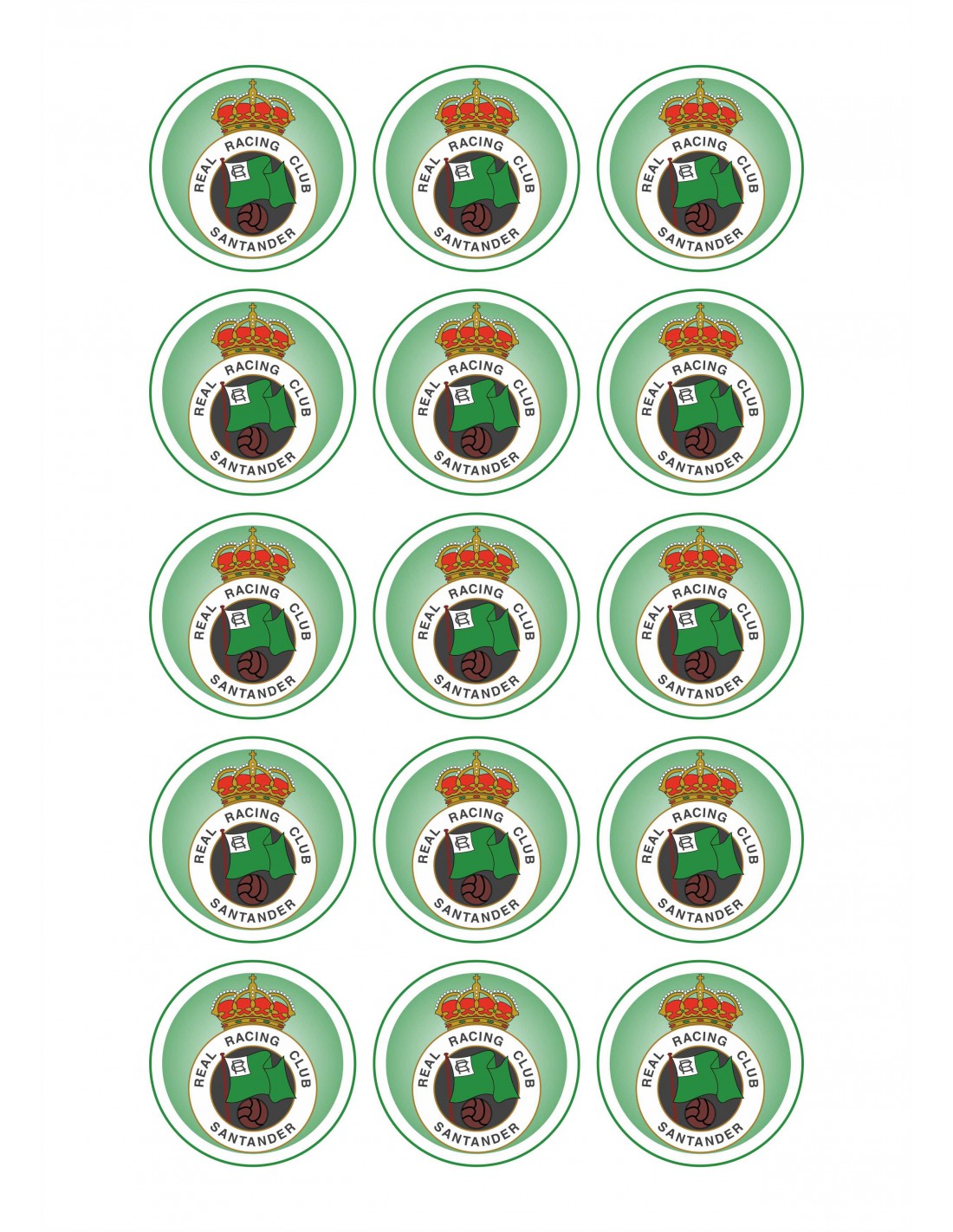 Hoja de papel de azúcar o chocotransfer impresas con tinta comestible para decorar galletas o cupcakes, con imágenes del escudo del Racing de Santander.