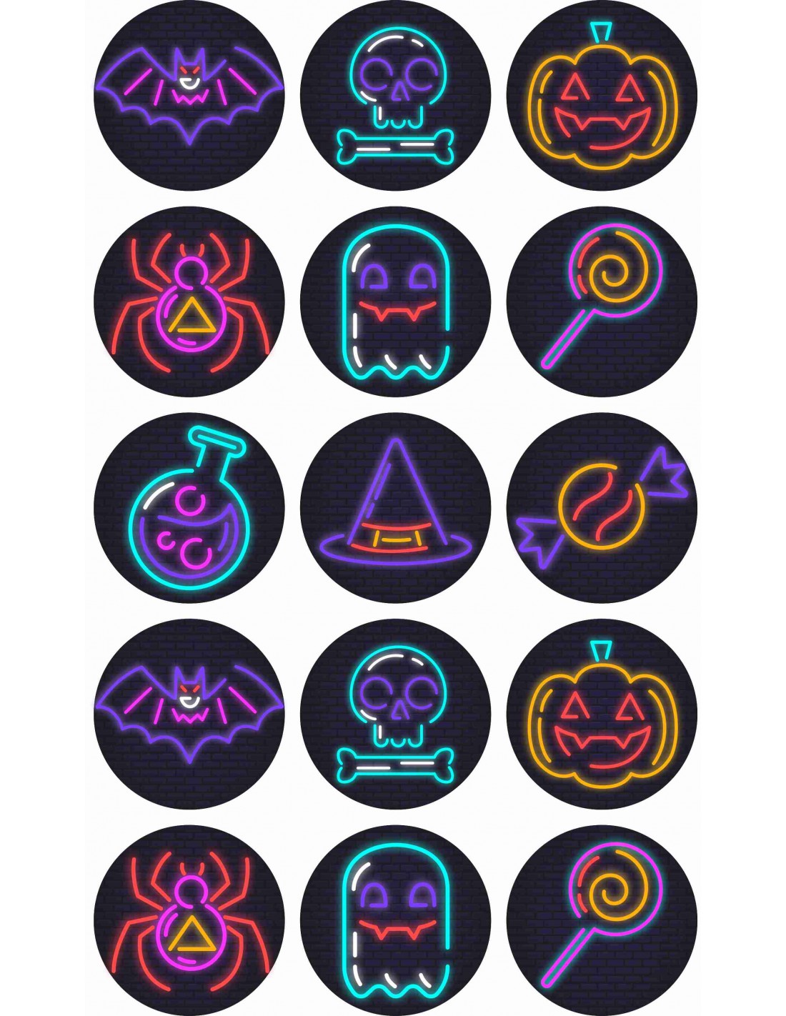 Hoja de papel de azúcar o chocotransfer impresa con tinta comestible para decorar galletas, con varios dibujos de temática de Halloween.