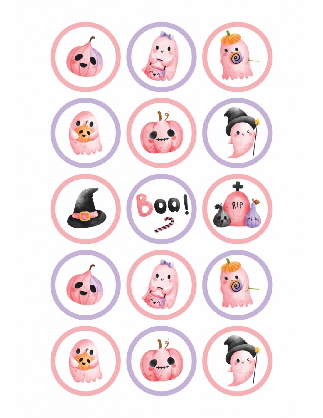 Hoja comestible impresa con tinta alimentaria para decorar galletas con varios dibujos y temática de Halloween.
