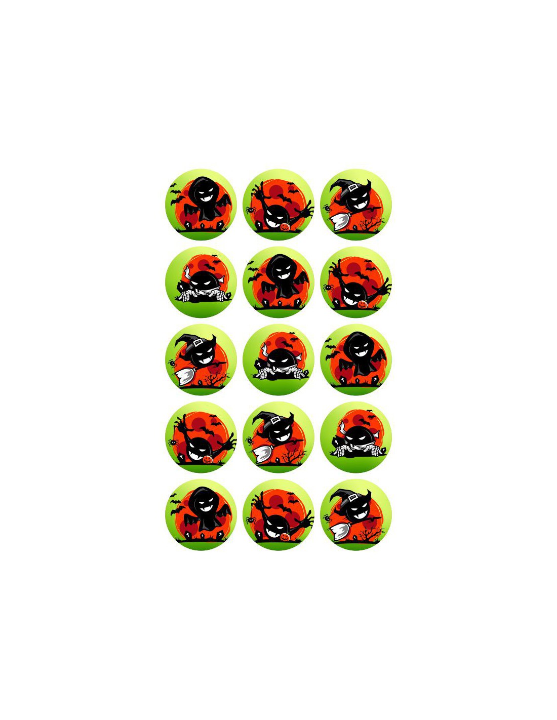 Hoja de papel de azúcar o chocotransfer impresa con tinta comestible para decorar galletas, con varios dibujos de temática de Halloween.