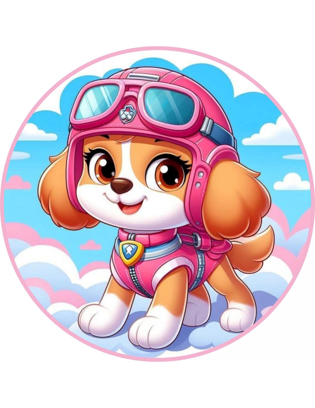 Hoja de papel de azúcar o chocotransfer impresa con tinta comestible para decorar tartas con los personajes de Skye.