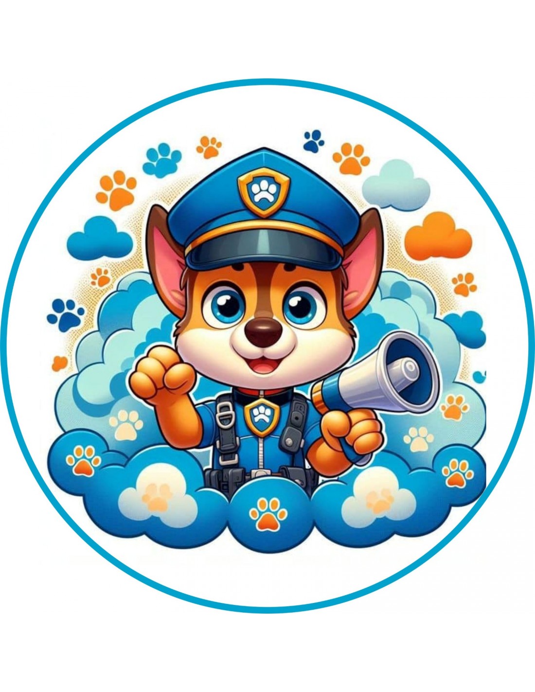 Hoja de papel de azúcar o chocotransfer impresa con tinta comestible para decorar tartas con los personajes de Chase.