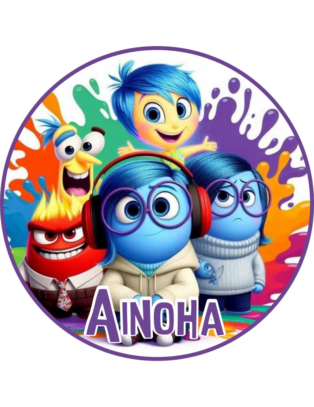 Hoja de papel de azúcar o chocotransfer impresa con tinta comestible para decorar tartas con los personajes de Del Revés.