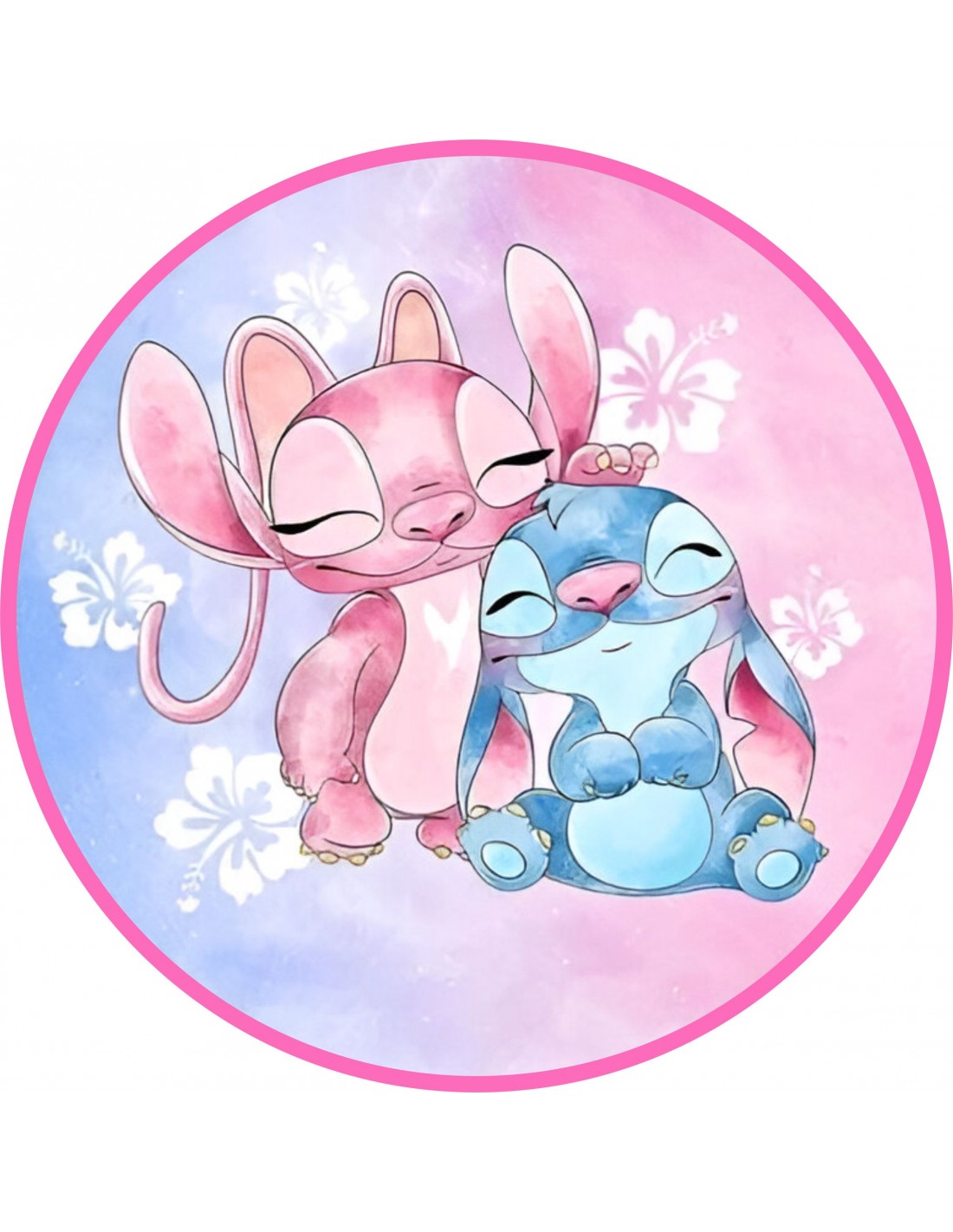 Hoja de papel de azúcar o chocotransfer impresa con tinta comestible para decorar tartas con imágenes de Stitch.
