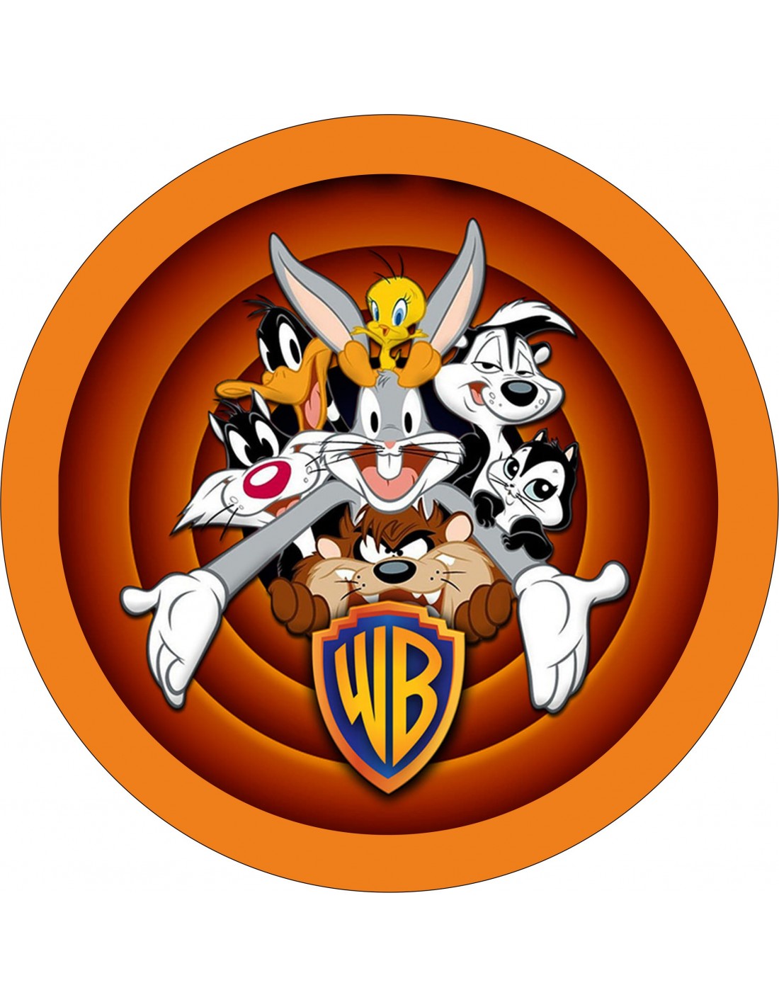 Hoja de papel de azúcar o chocotransfer impresa con tinta comestible para decorar tartas con los personajes de Looney Tunes.