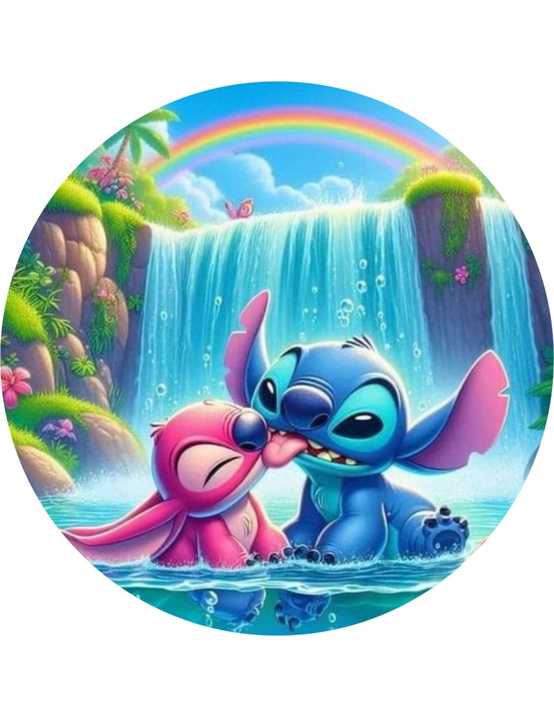 Hoja de papel de azúcar o chocotransfer impresa con tinta comestible para decorar tartas con imágenes de Stitch y Angel.