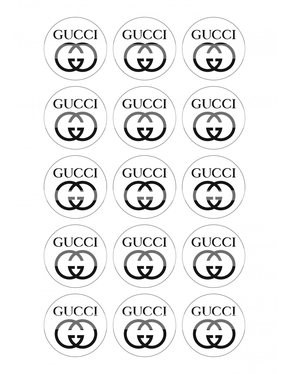 Hoja de papel de azúcar o chocotransfer impreso con tinta comestible para decorar galletas de Gucci.