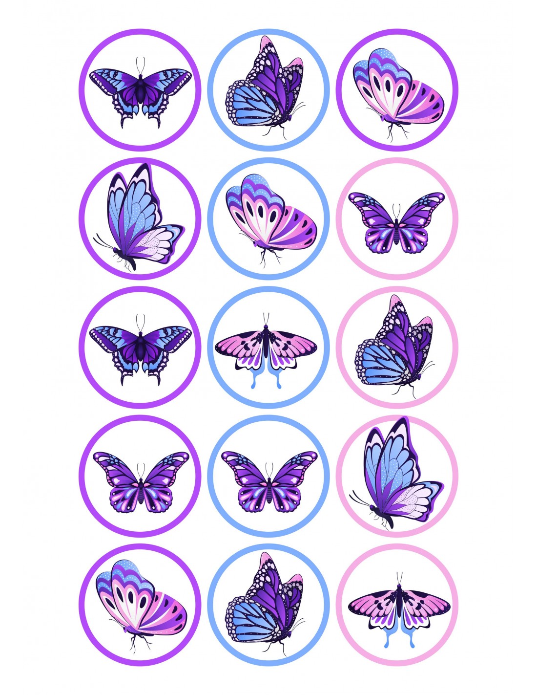 Hoja de papel de azúcar o chocotransfer impresa con tinta comestible para decorar galletas o cupcakes con imágenes de Mariposas.