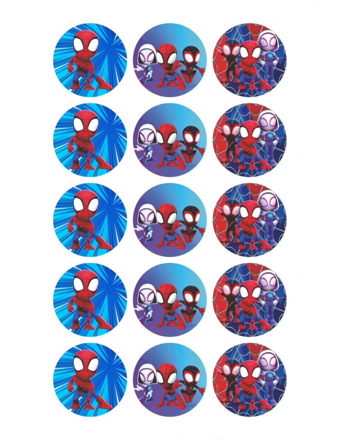 Hoja de papel de azúcar o chocotransfer impreso con tinta comestible para decorar galletas o cupcakes con imágenes de Spidey.