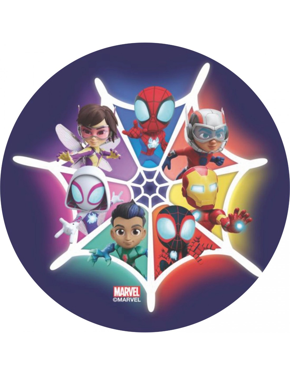 Hoja de papel de azúcar o chocotransfer impreso con tinta comestible para decorar tartas con imágenes de Spidey.