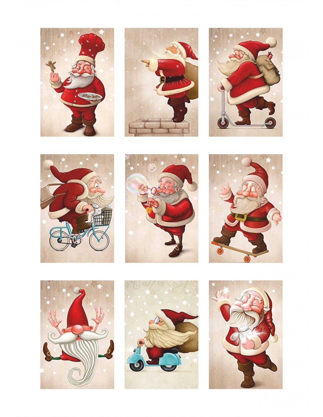 Hoja de papel de azúcar o chocotransfer impresa con tinta comestible para decorar galletas con divertidas imágenes de Navidad.