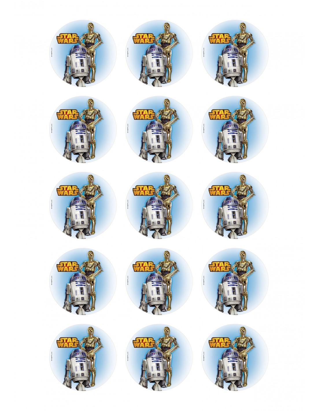 Hoja de papel de azúcar o chocotransfer impreso con tinta comestible para decorar galletas o cupcakes de Star Wars.