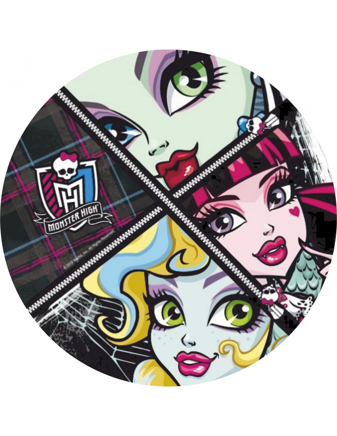 Hoja de papel de azúcar o chocotransfer impresa con tinta comestible para decorar tartas con imágenes de los personajes de Monster High.