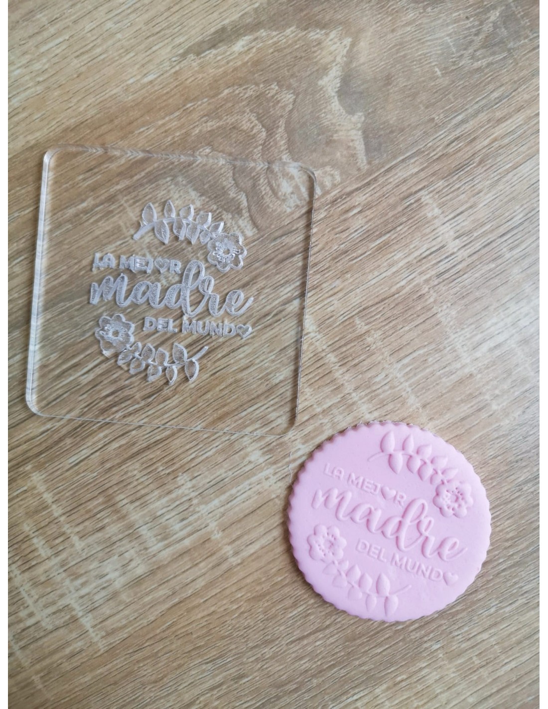 Sello para galletas con mensaje ideal para el día de la madre. Este sello está fabricado en metacrilato transparente apto para alimentación.