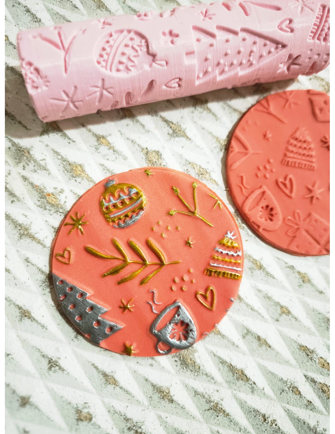 Rodillo Marcador Dibujos Navideños muy fácil de utilizar y perfecto para marcar fondant.