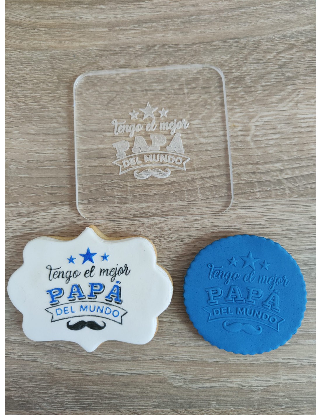 Sello para galletas con mensaje ideal para el día del padre. Este sello está fabricado en metacrilato transparente apto para alimentación.
