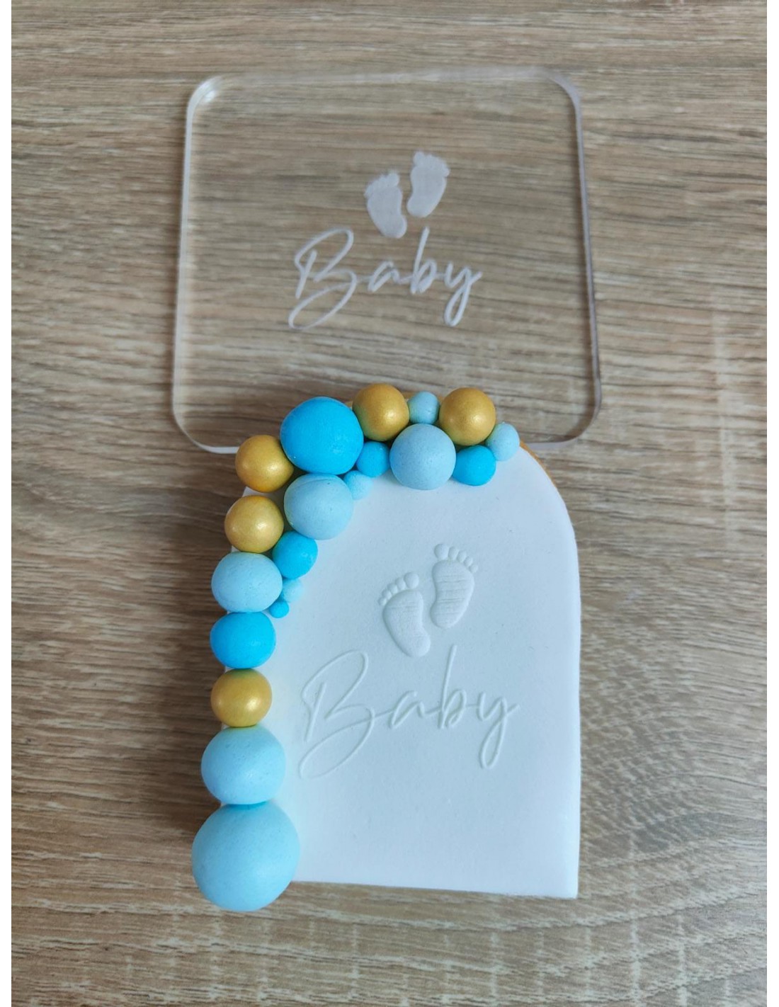 Este sello está fabricado en acrílico transparente apto para alimentación y es ideal para decorar galletas de bautizo o Baby Shower.