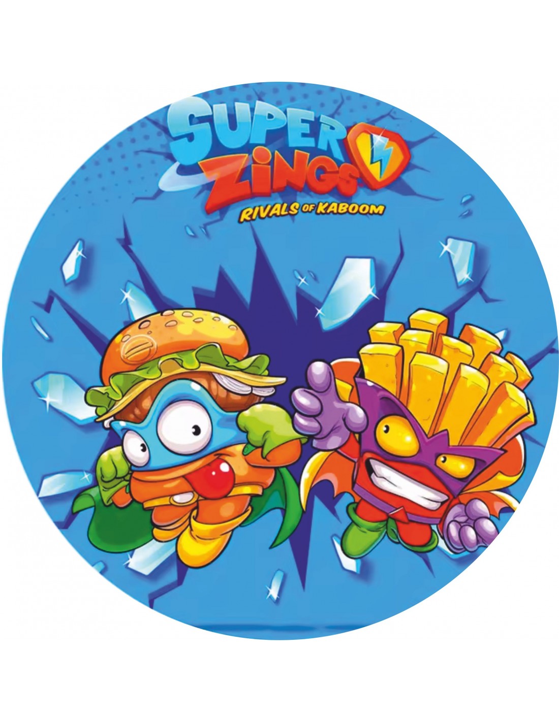 Hoja de papel de azúcar o chocotransfer, impresa con tinta comestible para decorar tartas con diferentes imágenes de los personajes de Superzings.