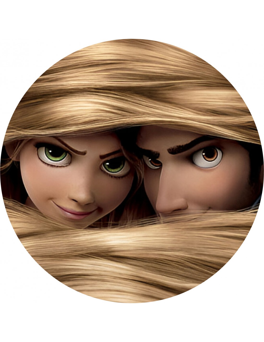 Hoja de papel de azúcar o chocotransfer impresa con tinta comestible para decorar tartas con los personajes de Rapunzel y de la película Enredados